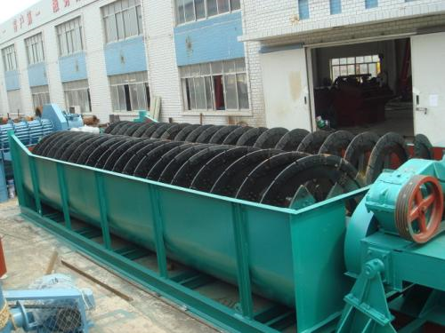 螺旋分級(jí)機(jī)是選礦的設(shè)備之一,螺旋分級(jí)機(jī)借助固體顆粒的比重不同,因而在液體中沉淀的速度不同的原理,進(jìn)行機(jī)械分級(jí)的一種設(shè)備。能把磨機(jī)內(nèi)磨出的料粉級(jí)于過濾,然后把粗料利用螺旋片旋片旋入磨機(jī)進(jìn)料口,把過濾出的細(xì)料從溢流管子排出。螺旋分級(jí)機(jī)簡稱分級(jí)機(jī)。 分級(jí)機(jī)主要有高堰式單螺旋和雙螺旋、沉沒式單螺旋和雙螺旋四種分級(jí)機(jī)。分級(jí)機(jī)主要由傳動(dòng)裝置、螺旋體、槽體、升降機(jī)構(gòu)、下部支座(軸瓦)和排礦閥組成。螺旋分級(jí)機(jī)廣泛適用于選礦廠中與球磨機(jī)配成閉路循環(huán)程分程分流礦沙,或用在重力選礦廠中來分級(jí)礦砂和細(xì)泥,及金屬選礦流程中對(duì)礦漿進(jìn)行粒度分級(jí),及洗礦作業(yè)中的脫泥、脫水等作業(yè)。